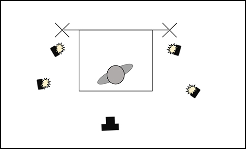 Usually, for such a setup, you may need as many as four lights: two just to light the background and one or two to light the subject. In that case, your setup might be something like this.