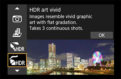3. Press the [SET] button, and select ‘HDR Art Vivid’.