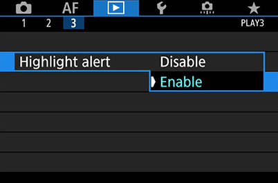 Know this: If your camera doesn’t have the Highlight Alert function, don’t fret. In playback mode, press the INFO button to toggle to the screen that displays the histogram. You should be able to see the highlight alerts there, although the image displayed will be smaller!