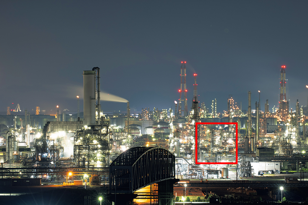 In this night industrial scene, setting Clarity to +2 enhanced the metallic texture, whereas reducing the effect level made the texture more subtle.