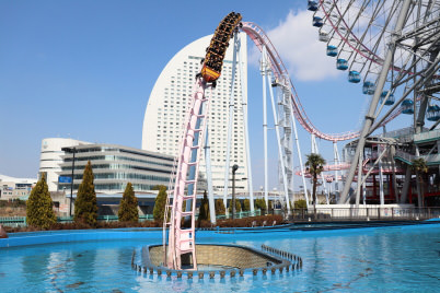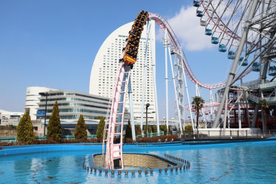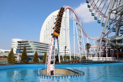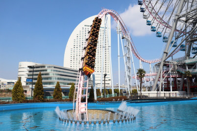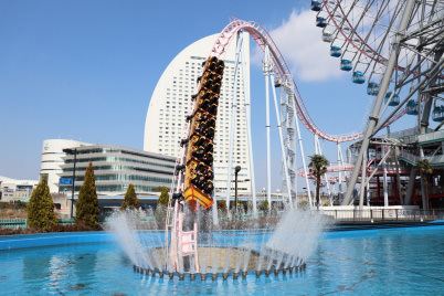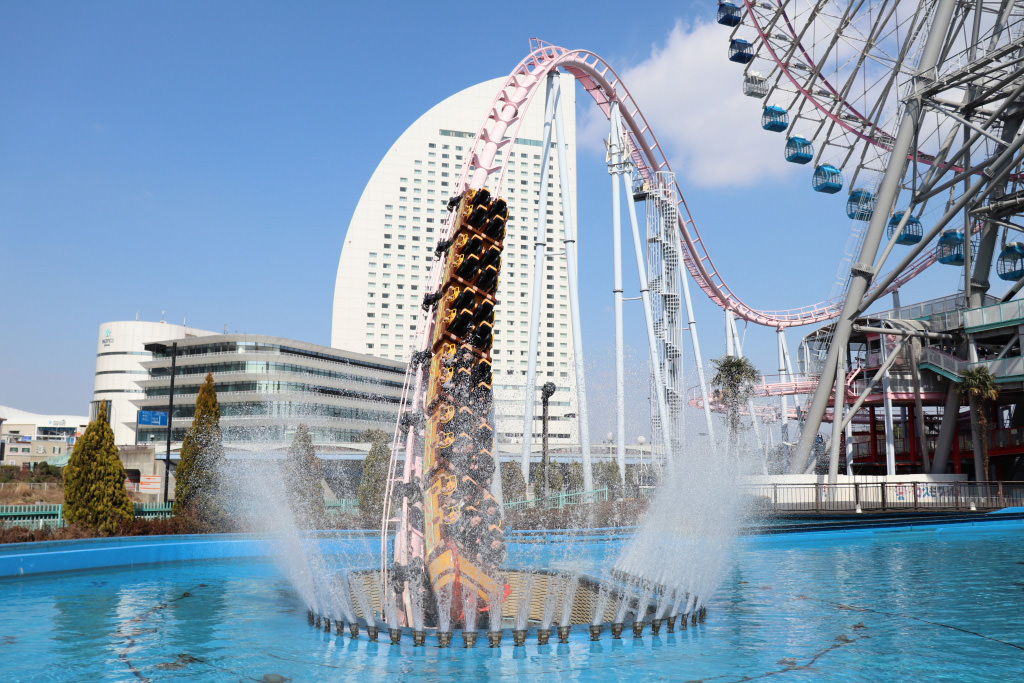 This shot was taken using continuous shooting at the moment when a roller coaster plunged into a pool of water. I decided that this was the best shot, given the amount of water spraying out of the fountain and the timing of the roller coaster making its plunge. In the shot immediately preceding this, the front of the roller coaster was right in the frame, so you can see that the interval between each shot is extremely small.