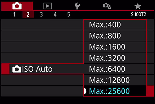 ISO speeds of up to 25600 can be set in ISO Auto mode.