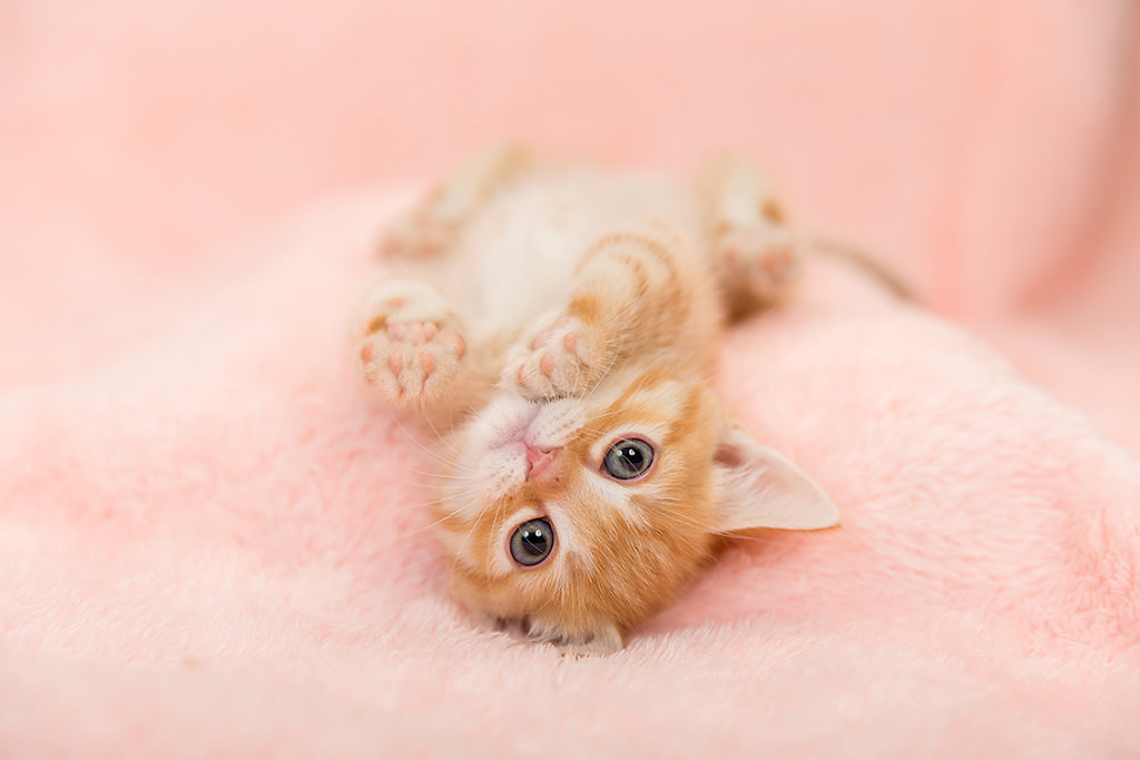 When you touch the kitten and it exposes its belly, rub its belly to tickle it with one hand, and take a shot with the other. It is difficult to secure the right timing, but if it goes well, you will successfully capture a cute moment just like in Photo A.