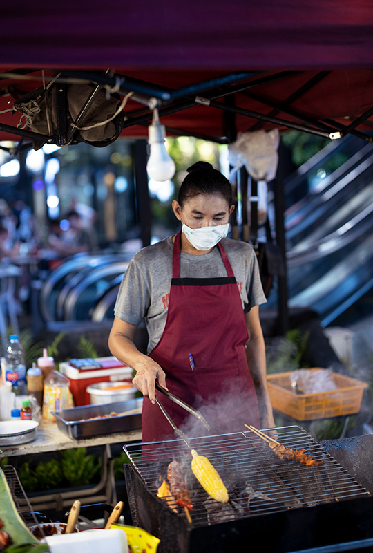 Giving context to your food is like telling a visual story to someone looking at your photo. Instead of the food itself, pull your frame a little wider to reveal the people in the stall making the food, the props he/she is using, or the environment. Having a human element in the photo adds depth and a personal touch – the perfect visual storytelling tool.