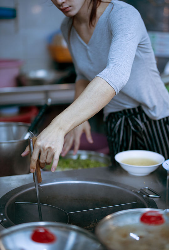 A scoop of fish balls or chopping of vegetables in a photo suggests movement. These are the valuable details that you may want to include in your shot. Instead of a person simply standing behind a stall, or a shot of static street food, you can perhaps incorporate actions into your shot to showcase a skill or bring your viewers through a journey. These people spend their days and nights cooking and honing their skills, and it would be a waste not to showcase that.