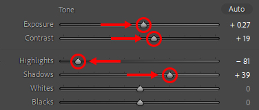 I reduced the highlights, lifted the shadows, and increased the exposure and contrast.