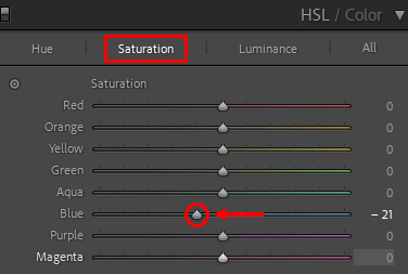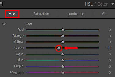 The greens and blues of the image appeared slightly different from the actual scene, so I reduced the green hues…