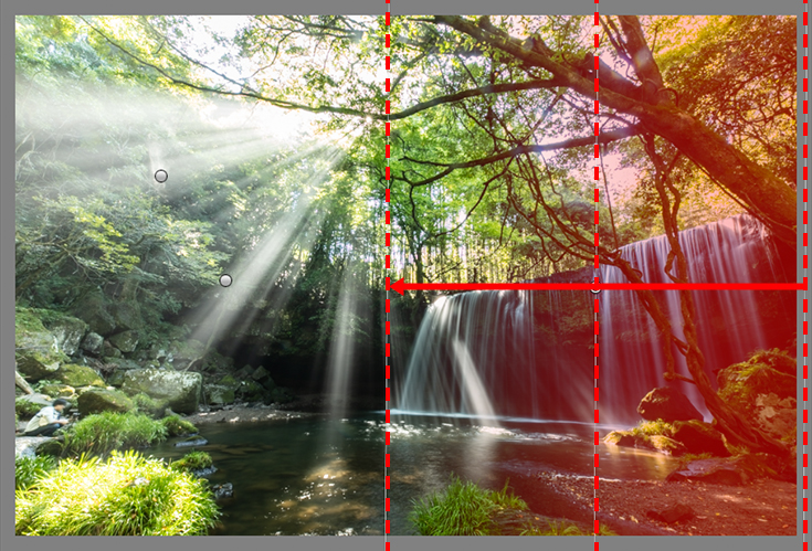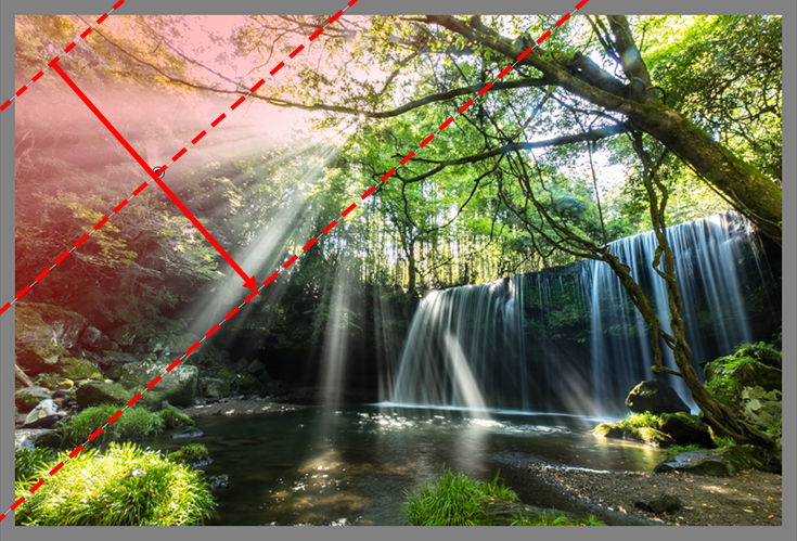 However, I felt that the contrast between the sunbeams and the area at the base of the waterfall too harsh. To remedy this, I made use of several linear gradient masks to carry out spot exposure adjustment, reducing highlights and lifting the shadows.