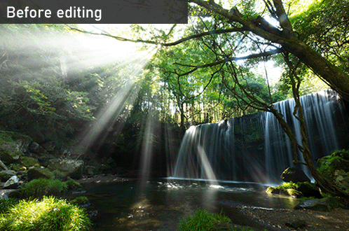 Even if you prefer images that look more natural, depending on the shooting conditions, you may still need to make adjustments to the image after you shoot so that it resembles your impression of the scene more closely. Here’s how landscape photographer Takashi Karaki post-processed and retouched this image of sunbeams at a waterfall to bring out their radiance against the vivid greenery. Time taken? Less than 3 minutes! (Reported by: Takashi Karaki, Digital Camera Magazine)