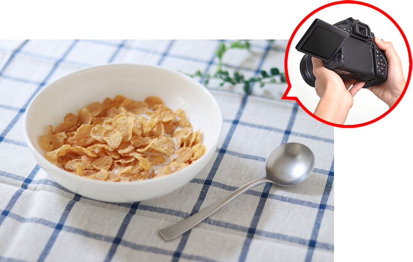 The vari-angle LCD monitor makes shooting at various angles and positions possible, whether it is shooting at a low position close to the floor, or at low and high angles which are difficult when done through the viewfinder. The horizontal-flip vari-angle LCD monitor lets you to change its angle in all four directions, which means you can shoot in Live View with ease, be it high angle photos of food on the table while seated down, such as in the picture below, or shots from a child’s eye-level. Shooting vertical compositions in Live View is also very convenient.