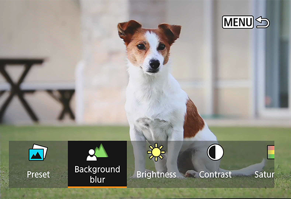 An intuitive interface for changing settings like background blur, brightness, contrast, and colour.