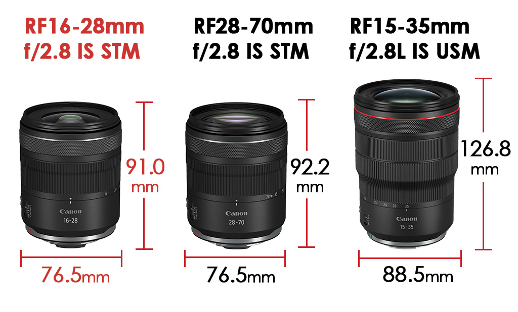 f/2.8 zoom lenses have a reputation for being large and heavy, more so if they are ultra-wide-angle. However, the small and portable RF16-28mm f/2.8 IS STM departs from the norm.
