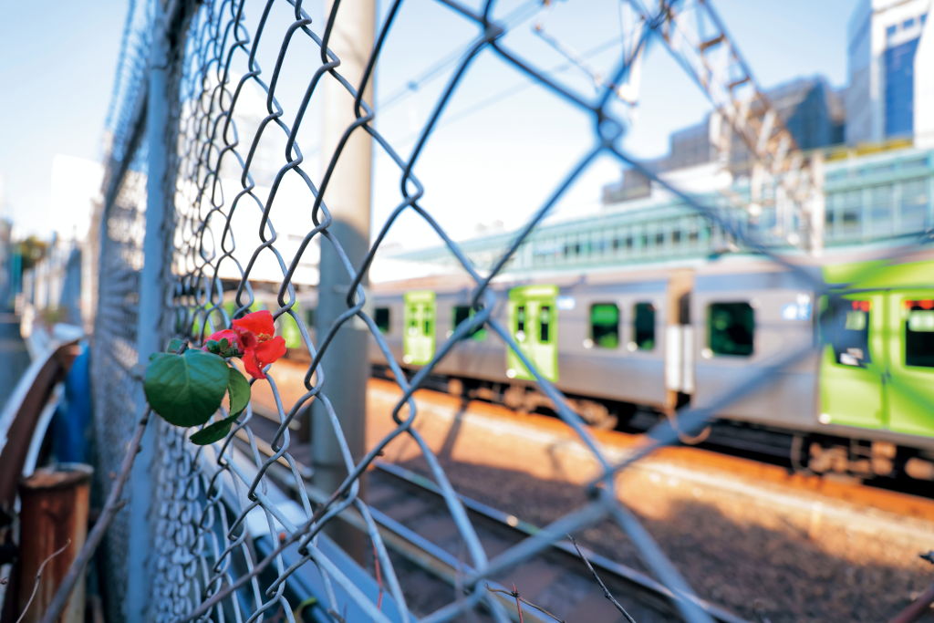 This flower by the fence looks as though it’s watching the trains, doesn’t it? To maximise the lens’ ultra-wide-angle perspective at 16mm, I shot the fence from the side, which enhances the sense of depth. The f/2.8 maximum aperture creates creamy bokeh both in the foreground and background.