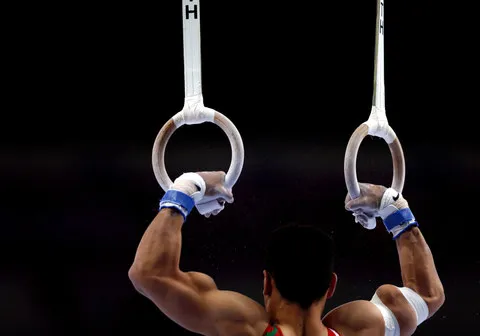 In gymnastics, the rings event is said to require the most use of arm muscles, so I knew that they were what I wanted to showcase in this shot. To draw attention to the muscle definition and intensity, I searched for a shooting position that provided a black background.
