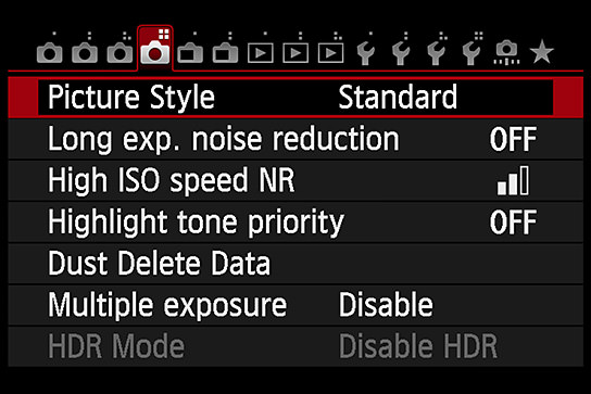 First, decide on which Picture Style mode to use. It is best to refer your camera’s User's Guide to check what kind of Picture Style modes your camera includes. On most camera models, you can also check this from the shooting menu.