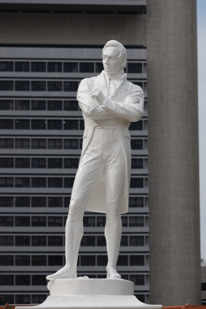 At this angle, the statue seems to tower proudly over the two tall buildings behind. His legs also look longer compared to the next image.