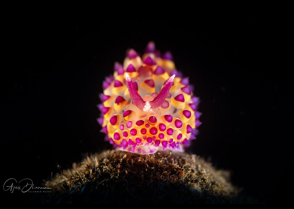 This Janolus was photographed at Melasti Tulamben, which is one of the famous muck dive spots in Bali. They can be found in shallow and subtidal waters.