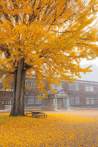 Putting a building in the centre of the frame so that it’s surrounded by colourful autumn foliage is a good way to make effective use of the space within the frame while giving the building a stronger presence. You can make the shot even more compelling by adjusting your shooting position so that the path or road leading up to the building forms a long leading line that draws the viewer’s eye towards the back of the scene.
