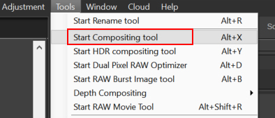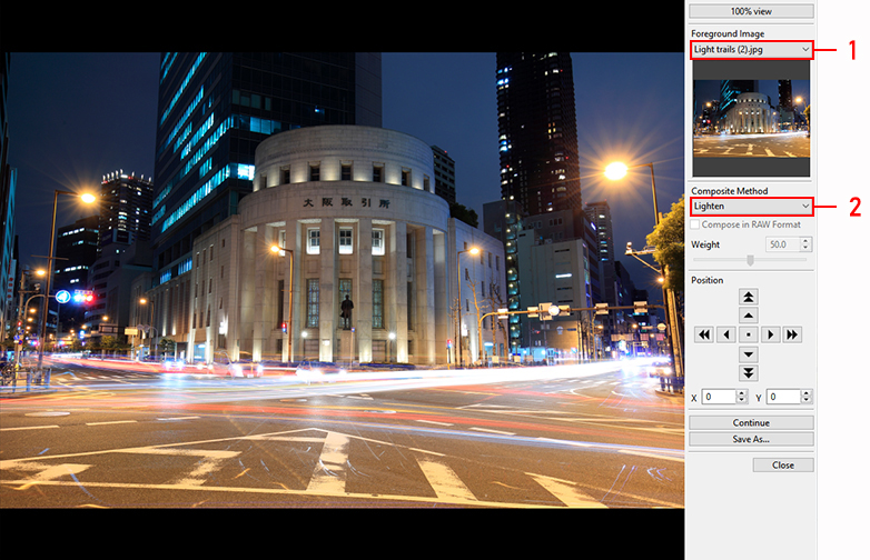 2. The merged image will be in JPEG format. But you can also do a composite in RAW format if all the images meet the following conditions:
