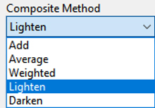 The composite method determines how the images will be combined. Here, I chose ‘Lighten’, which combines only the parts of the foreground image that are brighter than the background image. It works because we want to layer only the light trails, which are bright.