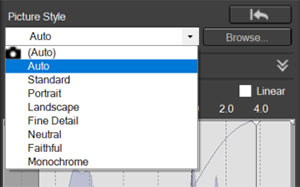 By default, DPP opens the RAW file with the Picture Style as shot. When you shoot in JPEG, the Picture Style is “baked” into your image, but if you shot in RAW and post-process the file in DPP, you can modify the Picture Style or apply a different one.