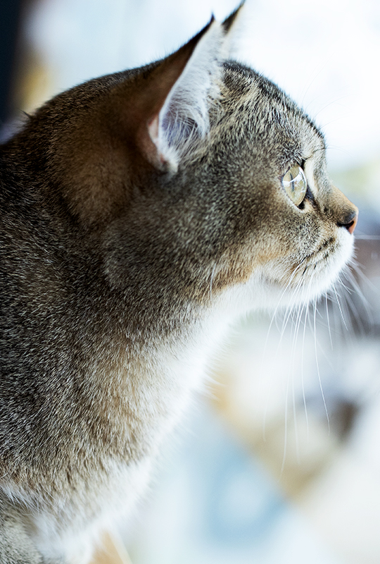 Just like a human portrait, we want to capture the eyes of our subject. For cats, it is way more interesting: their eyes can be slit-shaped, alluring almond or full round eyes, and all of that depends on the light at the time of the day. Also, the different sizes of the pupils are determined by the mood of the cat, for example, narrow slits could suggest arousal (anger, pleasure, etc.), while wide pupils could mean excitement or fear.
