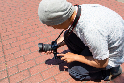 I took the shot above while kneeling on the ground. When you have to shoot from a low position and low angle like this, secure the camera by holding your lens firmly from the bottom with one hand. That leaves your other hand free to operate the camera.
