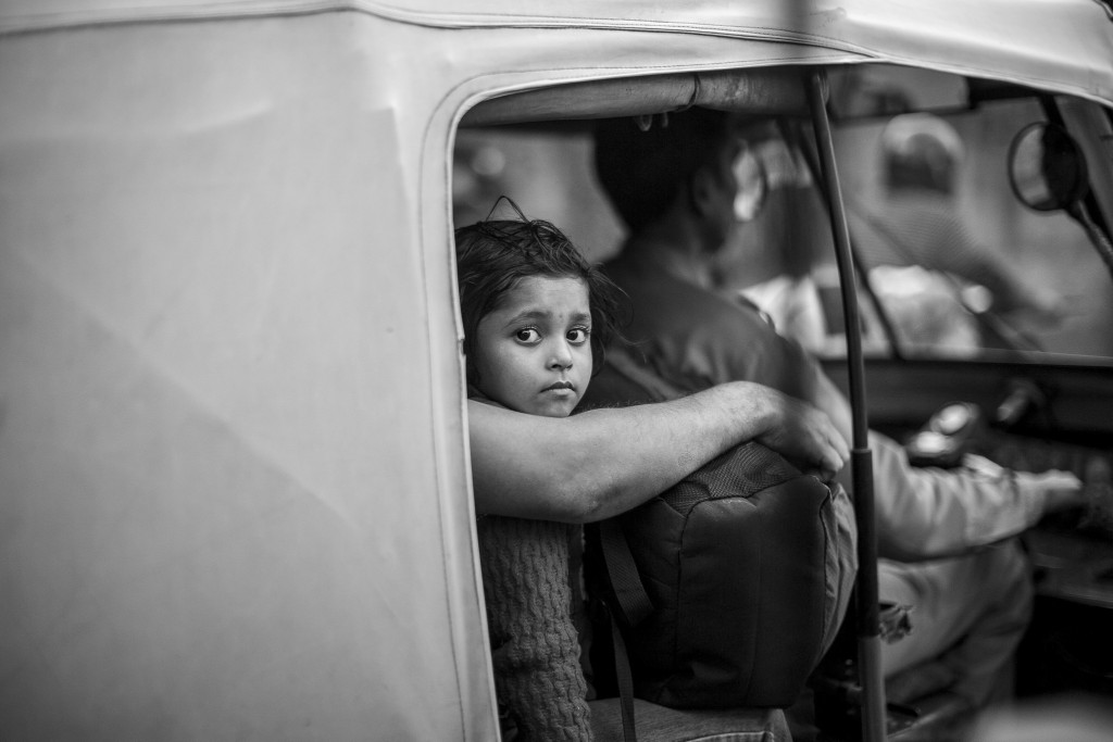 Girl in auto rickshaw in India