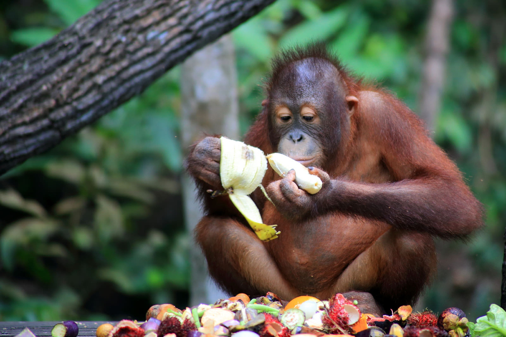 Orangutan in Borneo rainforest