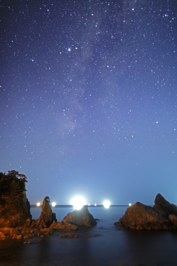 As autumn progresses, the Milky Way of summer begins to move over to the West. I shot at a low angle using a 20mm lens. I set the position carefully, as even minute changes in position can greatly affect the composition when using a super wide-angle lens.