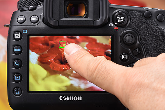 The touch panel on the rear LCD monitor lets you directly and quickly adjust the focus when in Live View. Image plane phase difference detection autofocus (AF) supports AF across a wide area covering about 80 percent of the screen through the use of Dual Pixel CMOS AF, which provides even faster AF performance than contrast AF. Outdoor photography always involves movement of some kind due to factors such as light and wind, which means that you need to move fast to capture picture-perfect moments. Touch AF helps you to focus quickly so that you can release the shutter faster.