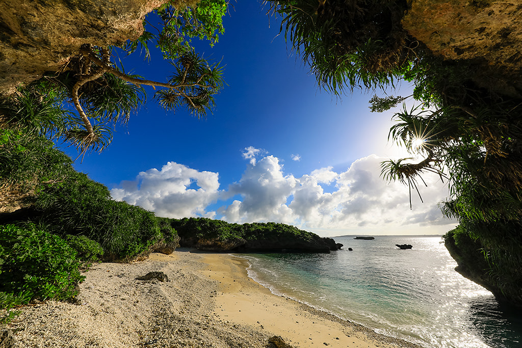 Photograph of a difficult scene with strong contrast. I took a shot that retained the sparkle of the sea and tone of the sky, without blacking out the shadow area formed by the rock.