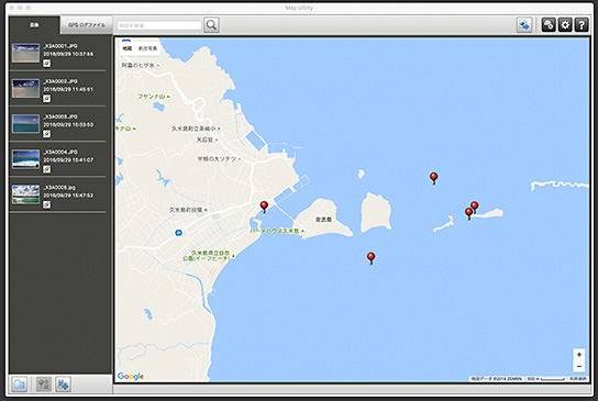 Because there is an absence of landmarks when photographing at sea, it used to be difficult to recall where your shooting location was. However, as the first camera in the EOS 5D series to be equipped with built-in GPS, the 5D Mark IV lets you append location information to the image data. And when you select such images in the accompanying Map Utility software, your shooting locations will be displayed on a map. The series of operations to do so is very simple, so all you need to keep in mind is the battery consumption and you can devote yourself to your shoot for the rest of the time.