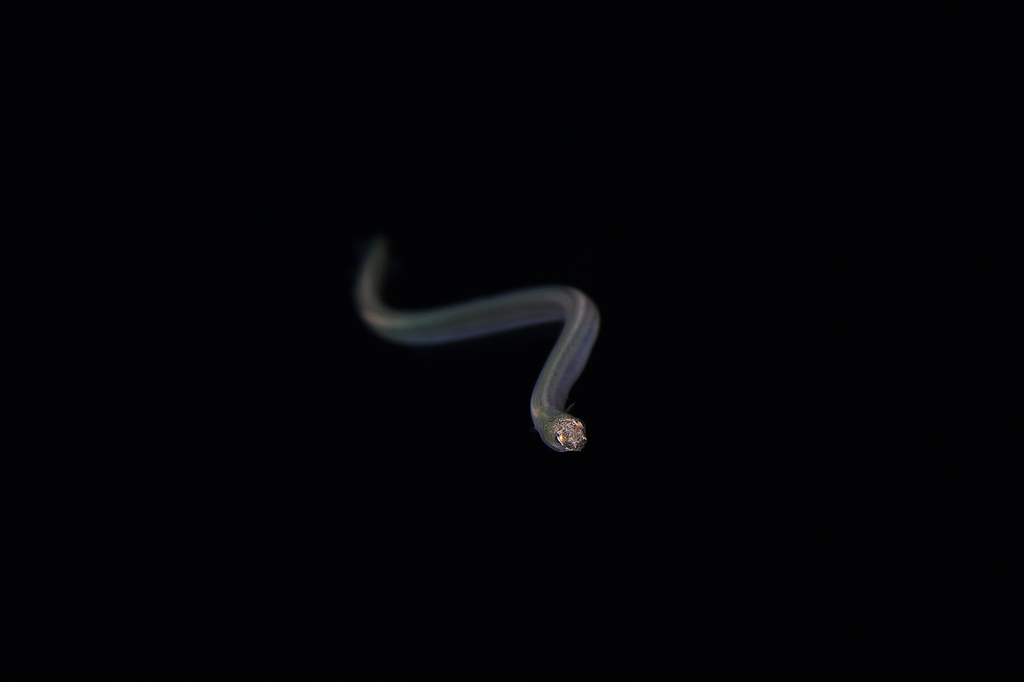 Photo credit: Steven Ko (Taiwan). The undulating body of this snake eel larva brings the viewers' attention to its head.