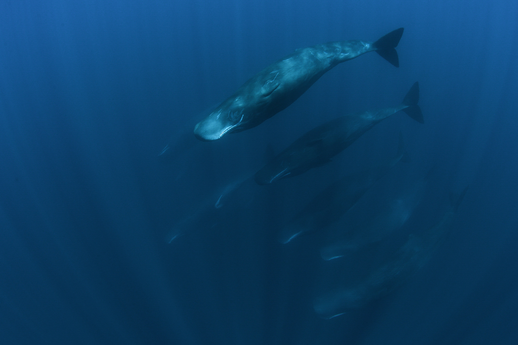 Photo credit: William Tan. A repeated pattern formed by these swimming sperm whales is pleasing to the eyes.