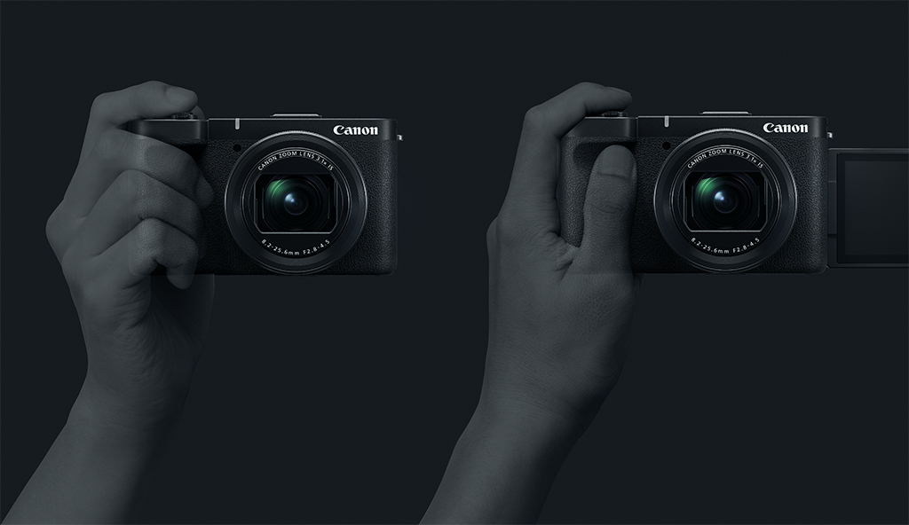 There’s also the ergonomically designed grip, shaped to help you keep the camera firm and steady regardless of whether you are behind the camera or holding it to face you while shooting selfies. There are many situations you might find yourself shooting one-handed, such as when you need your other hand on the railings for safety, or to hold lights or props. The PowerShot V1’s zoom, recording, and shutter buttons are designed for convenient one-handed access so you can reach them without finger gymnastics.