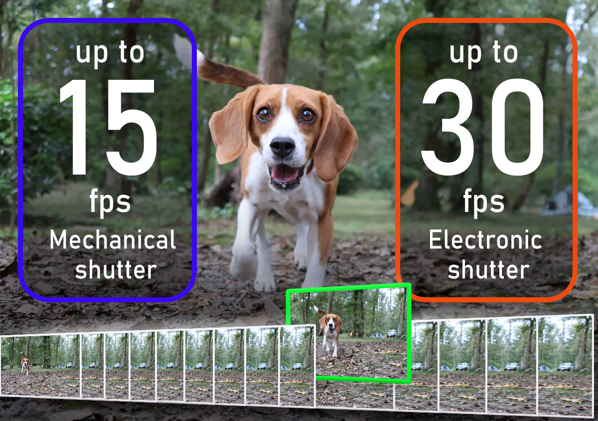 Two shutter drive modes; up to 30 fps electronic shutter continuous shooting
