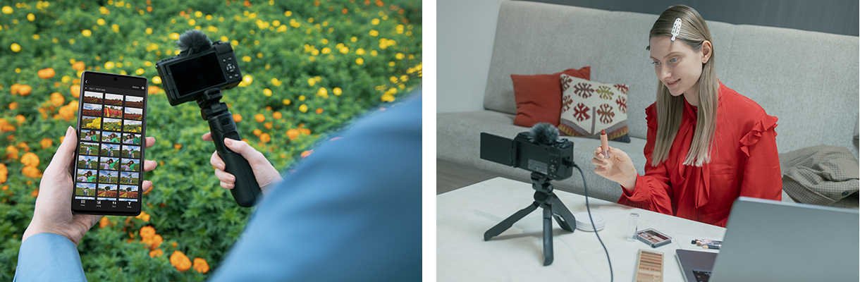 Creators who do product reviews or demos can use the Movie for close-up demos AF mode, which intelligently switches the focus from your face to an object closest to the camera so you don’t have to cover your face with your hands. Smooth skin movie mode ensures that whoever’s in front of the camera will always look good—even when you are using the camera for livestreaming.