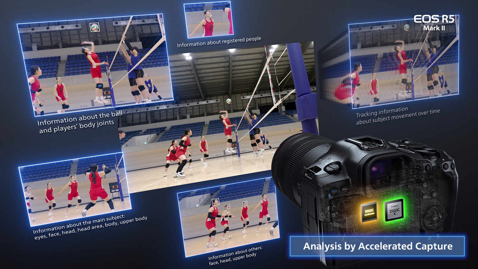 With the EOS R5 Mark II, existing deep learning-based subject detection capabilities also get a boost, particularly with the addition of new tracking functions for sports photography. These were made possible by the new Accelerated Capture image processing system, whose ability to analyse a massive amount of information in an instance allows the camera to take more details into account during its subject detection and tracking computations. For example, information about the information on athletes’ joints and the ball position helps the camera to track athletes’ movement more tenaciously and reliably.