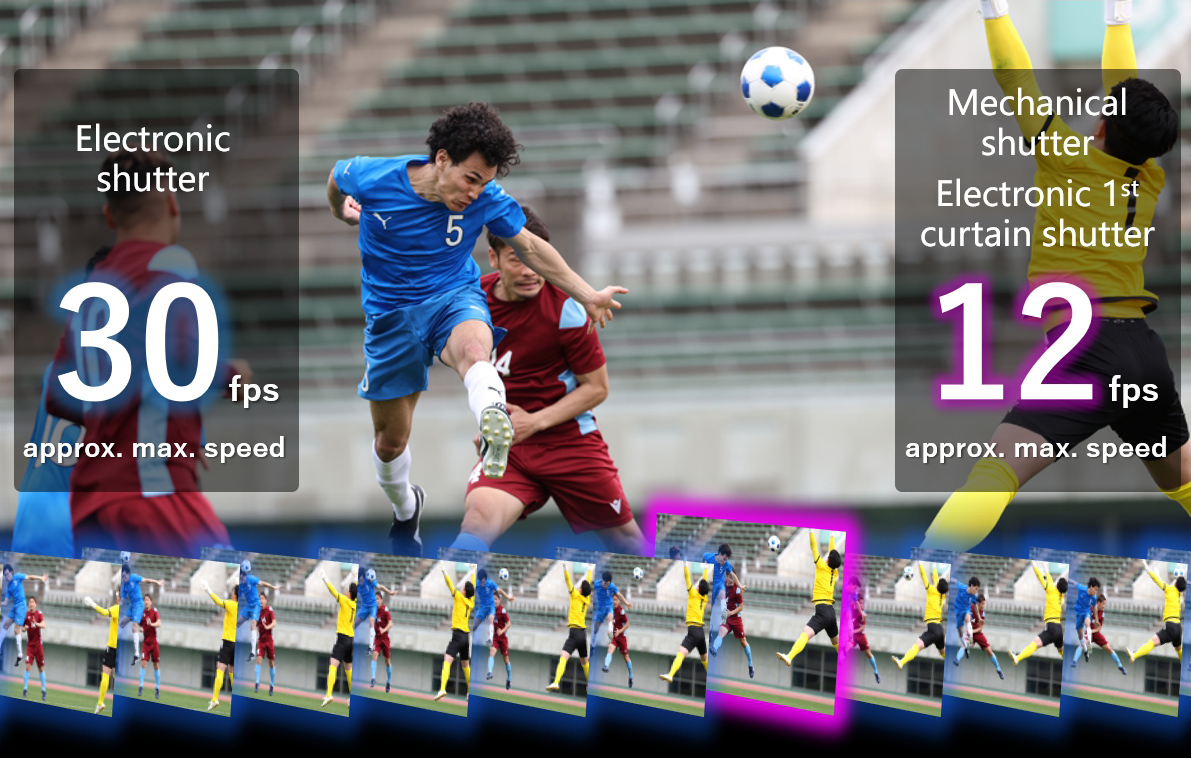 When using the electronic shutter mode, users can configure the continuous shooting speed to their needs, with intermediate shooting speeds available. Settings are: