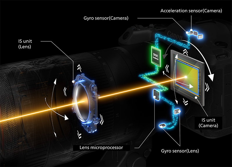 The EOS R5 Mark II’s In-body Image Stabilizer (In-Body IS) coordinates with the in-lens IS system on stabilised lenses to achieve up to 8.5 stops’ equivalent stabilisation at the image centre, and up to 7.5 stops’ equivalent at the image edges.