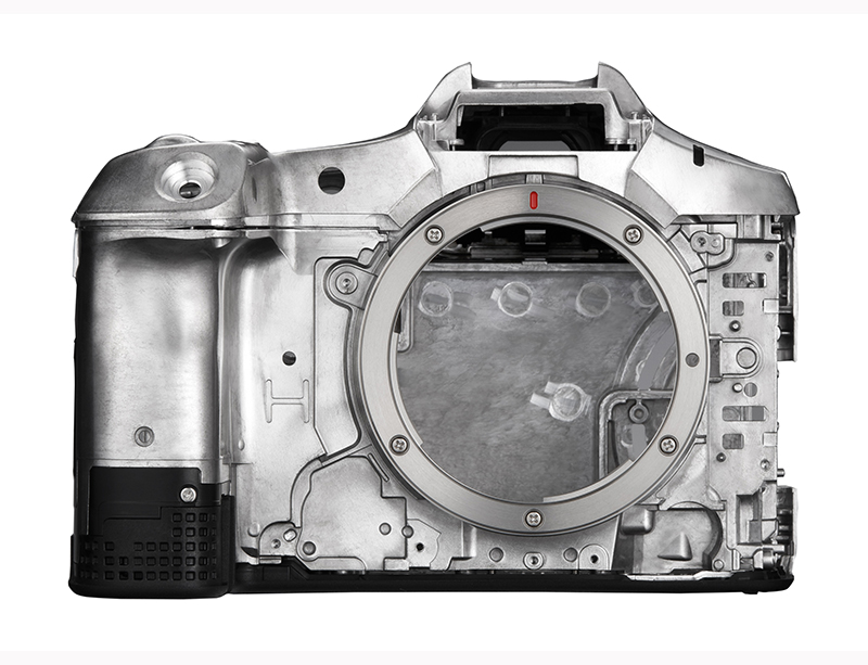 The body of the EOS R5 Mark II is made from strong, heat-dissipating, lightweight magnesium alloy.