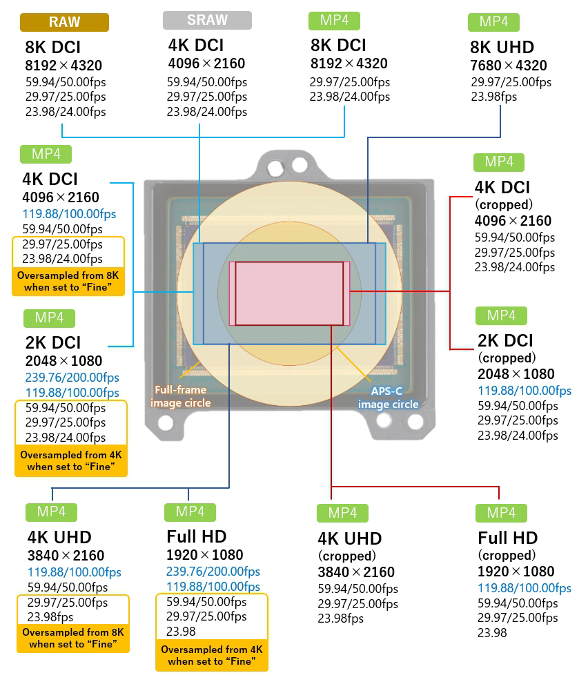 12 video recording formats including 8K 60p RAW and 4K SRAW