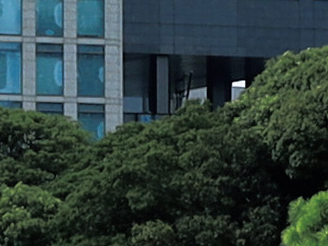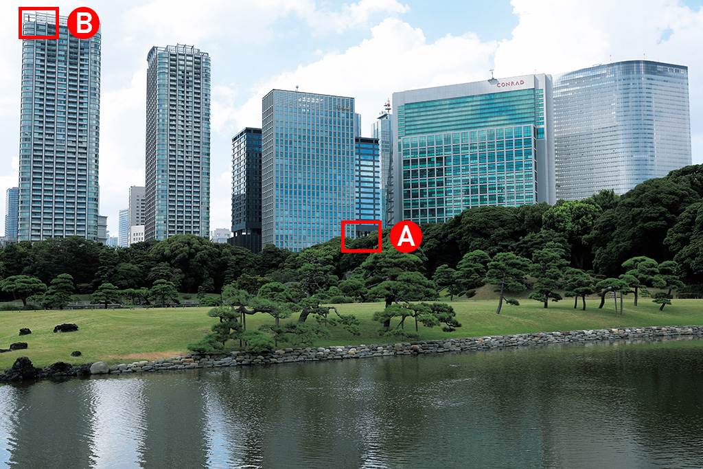 These buildings have densely concentrated lines—perfect for testing resolution. I captured them at f/8 from slightly further back and compared the details in the captured images. Digital Lens Optimizer was enabled.