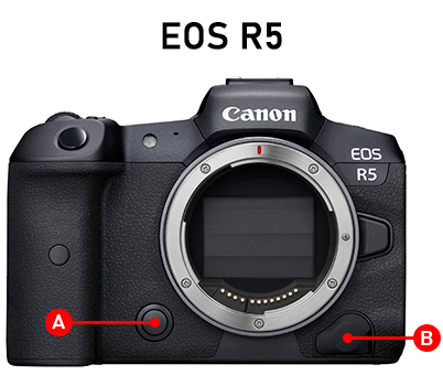 At first glance, the EOS R and EOS R5 look similar from the front. However, the EOS R5 is equipped with two additional features that indicate its design for professional users: a depth-of-field preview button (A) and a remote control terminal (B), which users of DSLR cameras will be familiar with.