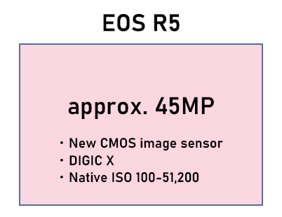 The EOS R5 not only has a faster, more powerful new image processor, DIGIC X, it also boasts a new CMOS image sensor that offers 50% higher image resolution, less image noise, and faster data readout and processing than that on the EOS R. Together, these enable higher native ISO sensitivity and a new “High” Digital Lens Optimizer setting, resulting improved image quality. In fact, the EOS R5 provides even better apparent resolution than the 50.6-megapixel EOS 5DS R.