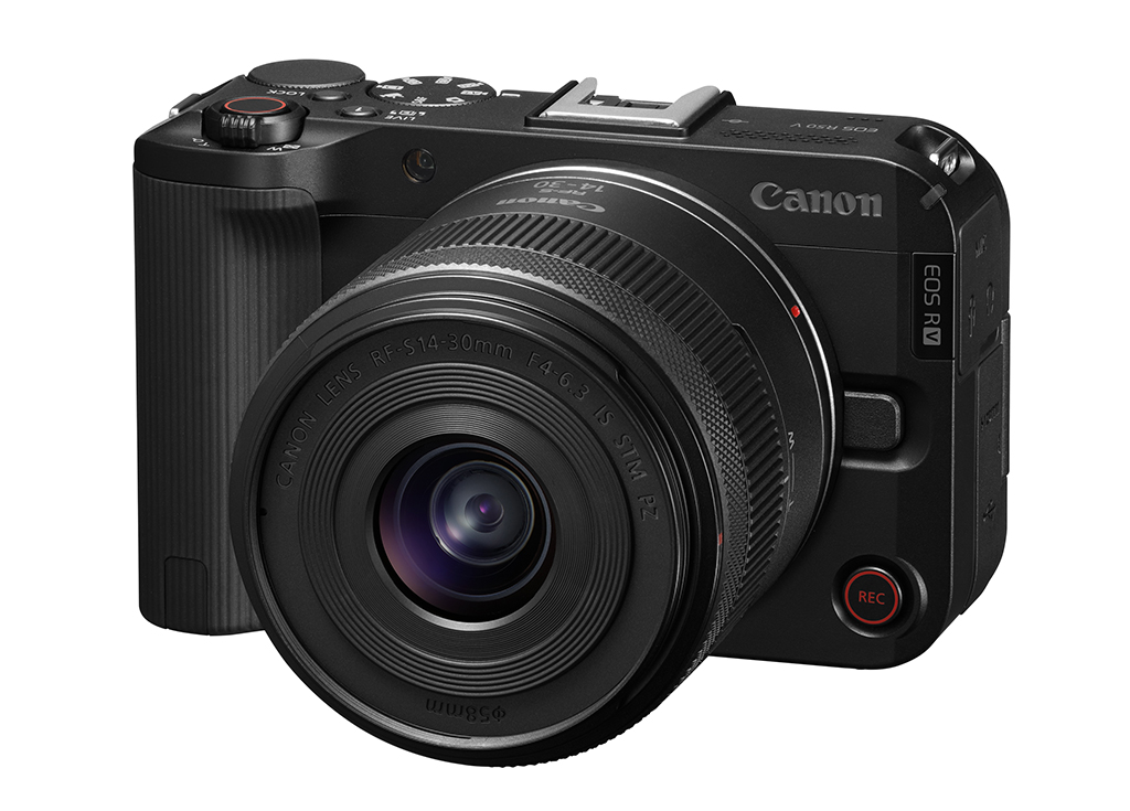 Some mirrorless cameras like the video-centric EOS R50 V (pictured here with the RF-S14-30mm f/4-6.3 IS STM PZ kit lens) don’t have a built-in viewfinder.