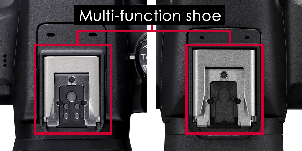 Most Canon cameras released since 2021 have a multi-function shoe. This has an extra digital terminal under the silver panel that can be used to supply power to compatible accessories such the Multi-Function Shoe Direction Stereo Microphone DM-E1D.