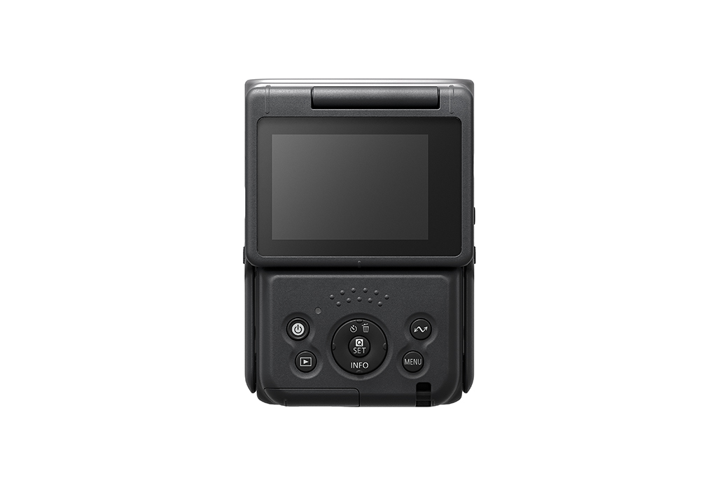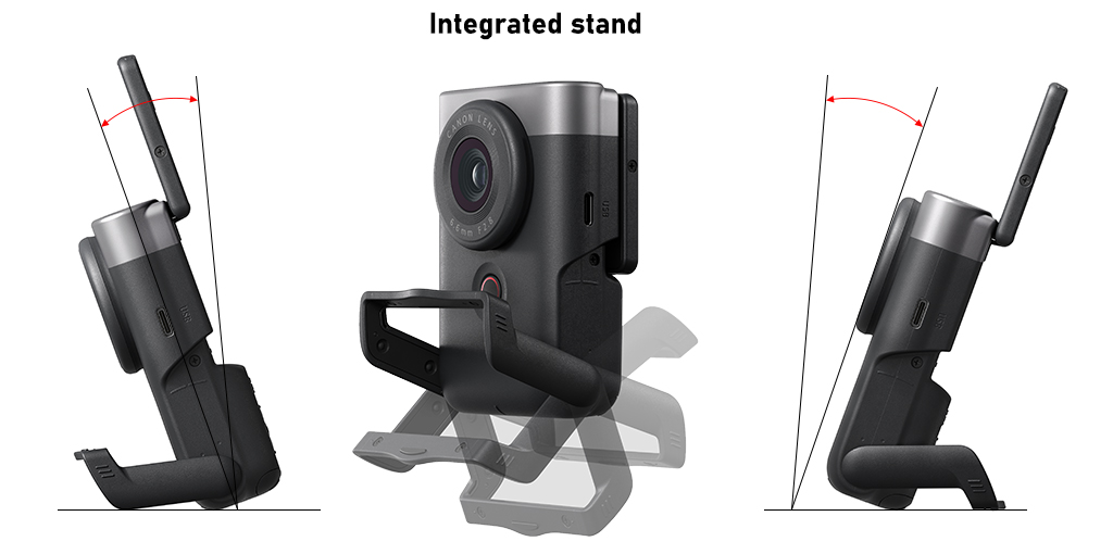 The PowerShot V10’s integrated stand unfolds easily to provide support when you need it: no scrambling for random objects to prop it up, unlike with a smartphone or other cameras! The stand can be tilted forwards and backwards, which provides more freedom to find the best angle.