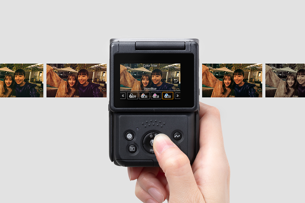 For those occasions where you want to tweak the colours in your footage to create a certain mood, the PowerShot V10 has 14 different colour filters that cater for different scenes. These include “Tasty Warm” and “Tasty Cool” filters for food and desserts, and various other colour treatments for different indoor and outdoor settings.
